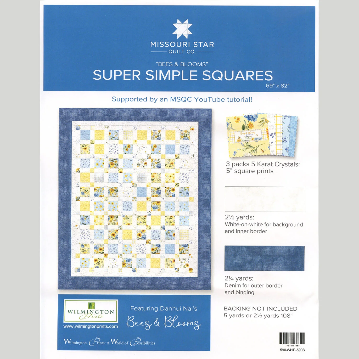From simple squares, you can make a simply bee-utifil quilt! There's even a Missouri Star tutorial to help you make it. Kit includes the MSQC Super Simple Squares pattern, and charm packs and other fabrics for the quilt top and binding from the Bees & Blooms collection by Danhui Nai for Wilmington Prints. You'll need 5 yards of backing fabric. We suggest Bees & Blooms - Large Floral Toss Blue yardage.