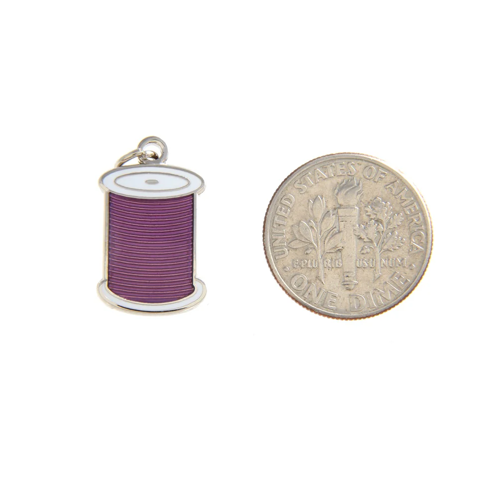 Every sewest needs an extra spool of thread on hand! This collectible charm is top quality nickel plated to match your sterling and pewter jewelry, hand enameled, highly polished, with jump ring to attach to your jewelry or slide onto a charm holder!