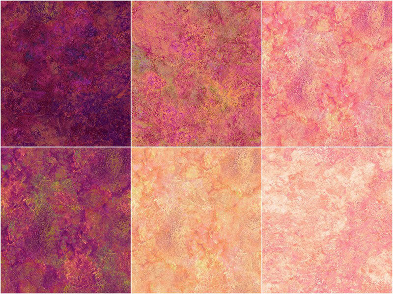 Layer cake with burgundy, pink, and gold gradations of color and a stone textured appearance. The gorgeous colors and textures from Northcott’s Stonehenge line continue in the Stonehenge Gradations II collection by Linda Ludovico. The mottled colors of these fabrics make them fantastic blenders.